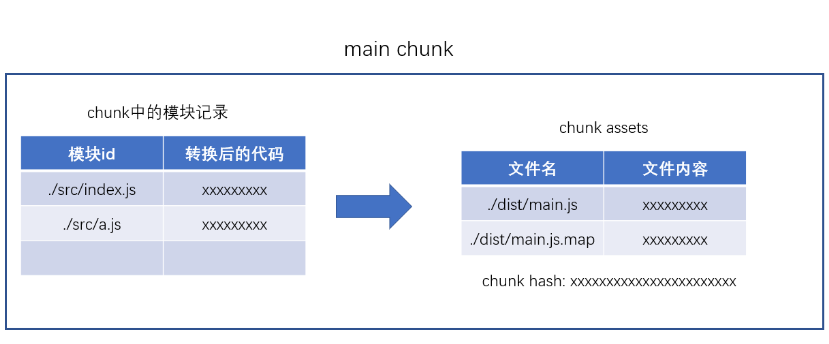 接下来,webpack会根据配置为chunk生成一个资源列表,即chunk assets,资源列表可以理解为是生成到最终文件的文件名和文件内容