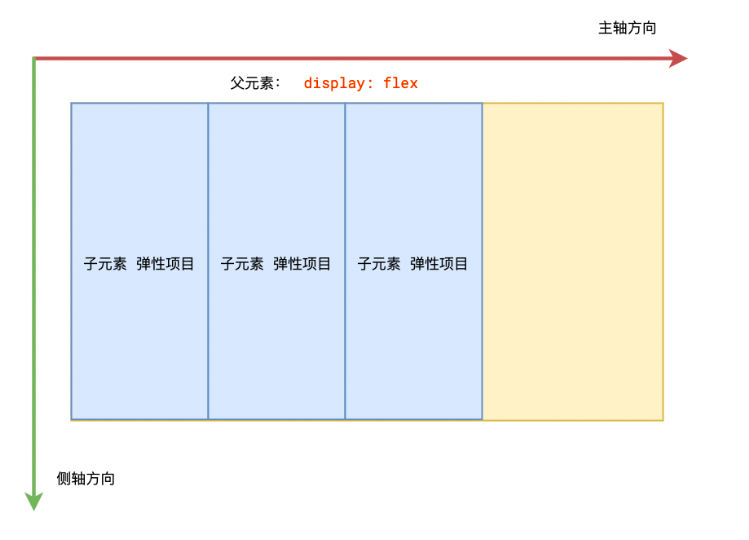 默认情况下弹性项目沿着主轴依次排列,侧轴拉伸