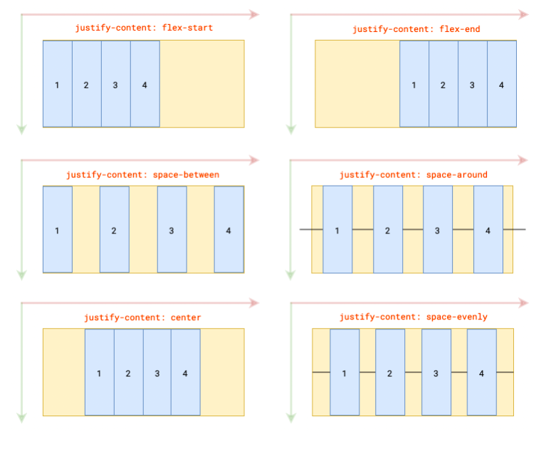 通过justify-content属性,可以影响主轴的排列方式