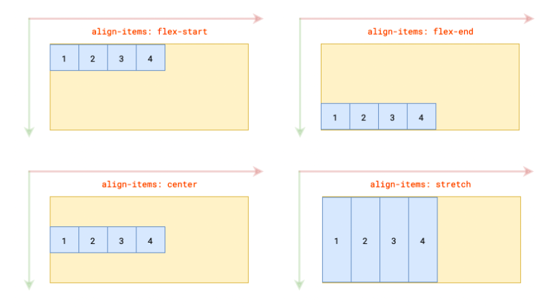 align-items: start 上 | end 下 | center 中 | stretch 拉伸;