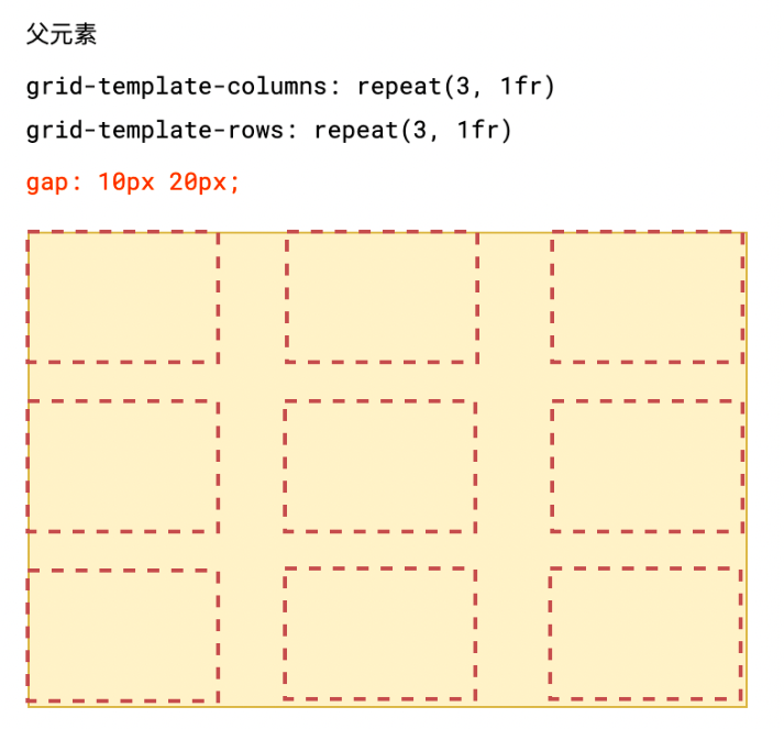 gap: 10px 20px; /* 行间隙为10px,列间隙为20px */
