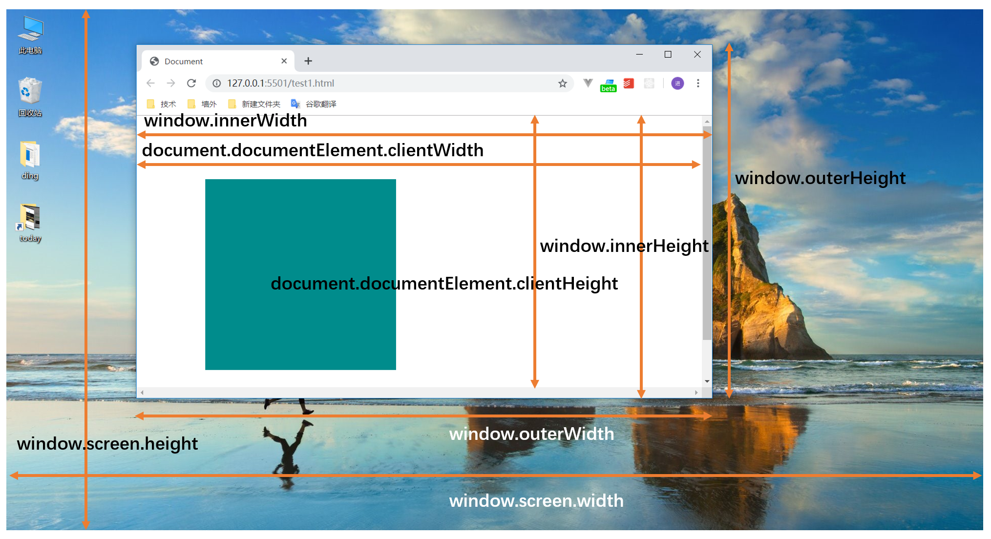 window.innerHeight 获取网页视口高度 (包含滚动条)