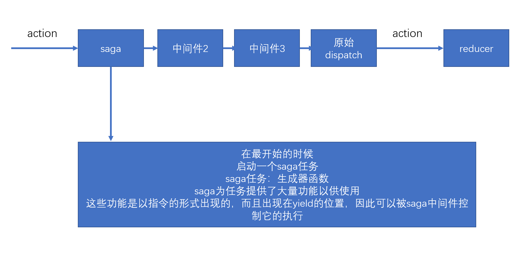 saga 需要你在 yield 后面放上一些合适的 saga 指令(saga effects),如果放的是指令,saga 中间件会根据不同的指令进行特殊处理,以控制整个任务的流程。